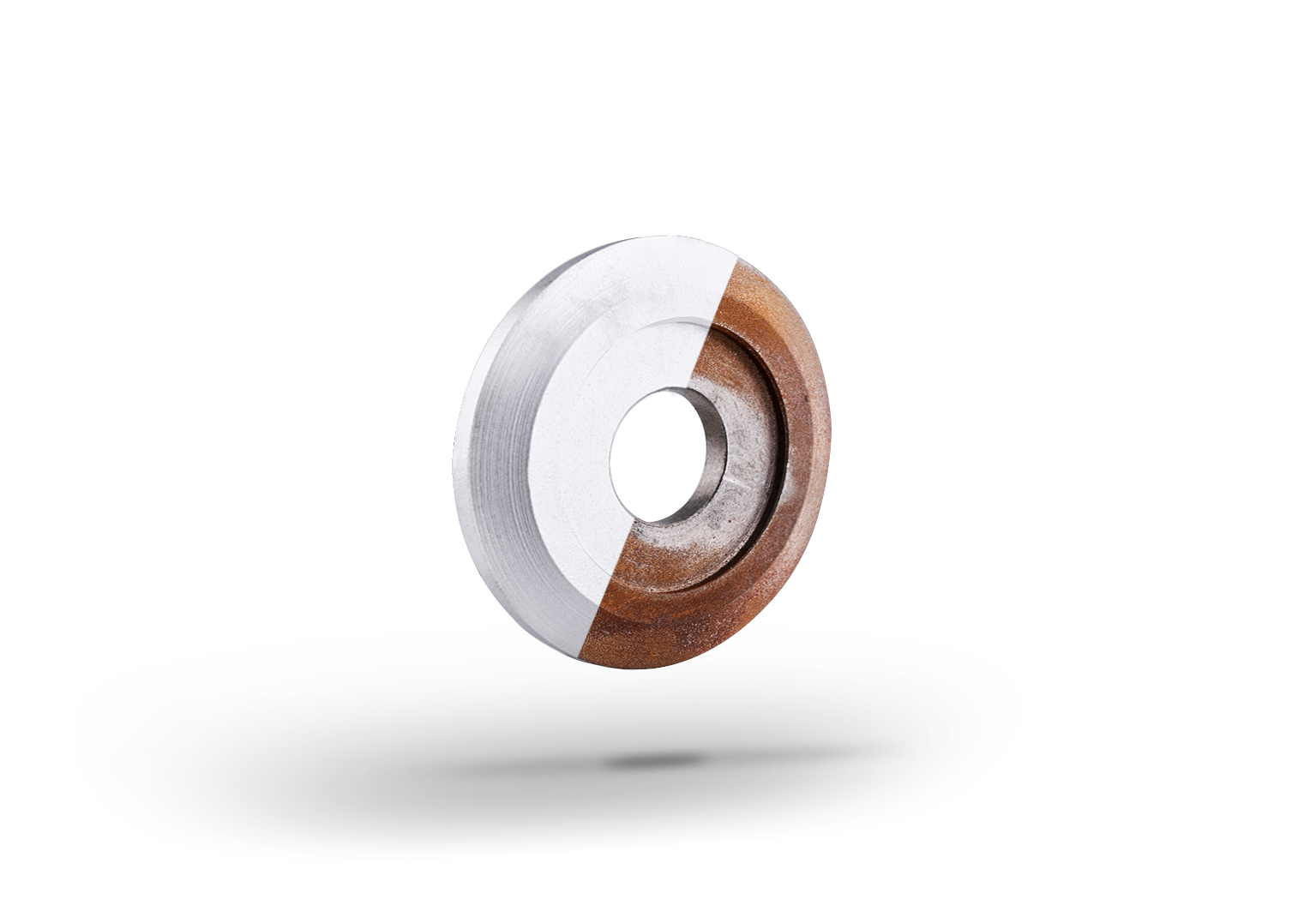 Befestigungsscheibe vorher-nachher: Der direkte Vergleich zeigt den Unterschied zwischen unbehandelt und glasperlgestrahlt.